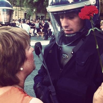 Prefiro a do cravo, pena é que o policia não tenha ceite o cravo, mas como explicou a do abraço - policia não é soldado.
